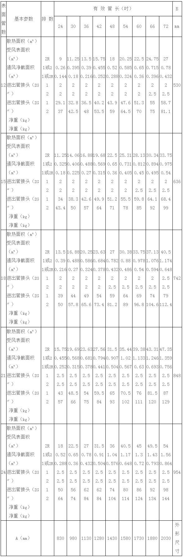 S型銅制空氣熱交換器基本參數(shù)續(xù)表